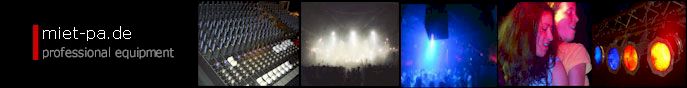 Lichtanlage: 2 Stative mit jeweils 4 PAR-64 Strahlern, Lichtcomputer 24 Kanal, Dimmerpack im Case, 4 Moving-Heads DMX gesteuert, Nebelmaschine mit 1 Liter Nebelfluid